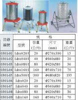 此桶籃式壓榨機底座有移動式滑輪,油壓活塞設於一傾斜機架上,容易進料,產力高且經久耐用。有電動及手動機型及不同桶籃大小可供選擇,最大壓力可達 350 大氣壓。亦可選購不銹鋼製桶籃,歡迎洽詢。